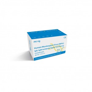 Human Monkeypox Virus (MPV) IgG/IgM antibody Rapid Test Device(Colloidal Gold) is a rapid chromatographic immunoassay for the qualitative detection of IgG & IgM antibody of human monkeypox virus in human whole blood, serum, or plasma as an aid in the diagnosis of monkeypox virus infections.